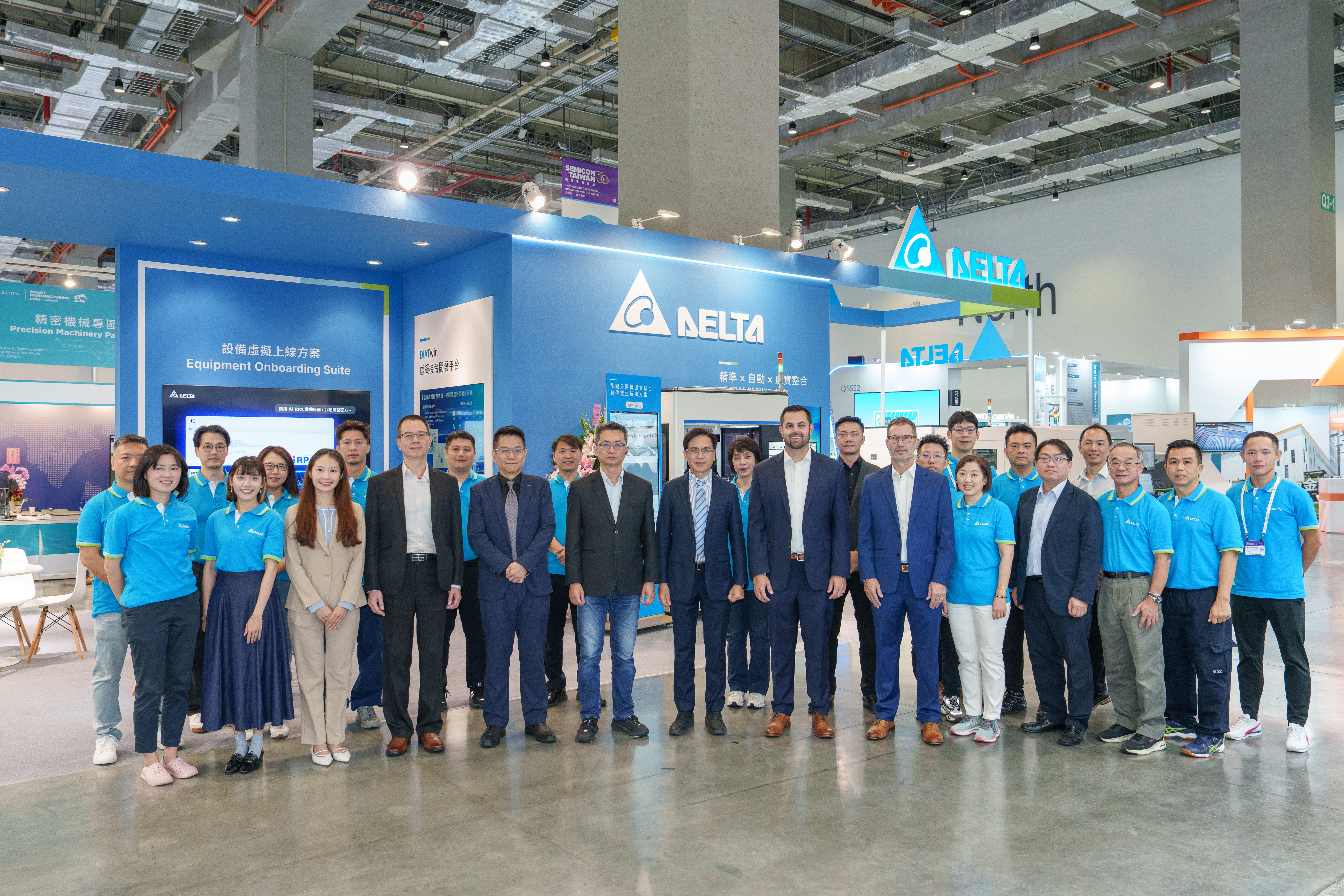 台達主管及同仁於SEMICON Taiwan 2025展位前合影。