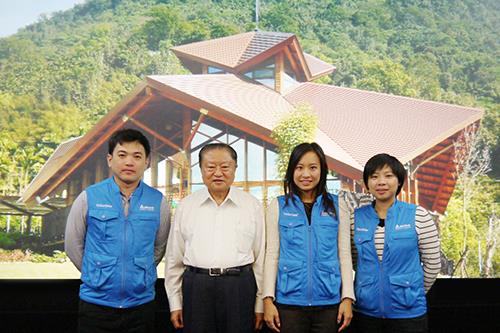 台達基金會鄭崇華董事長(左二) ,為赴聯合國氣候大會發表台灣案例的同仁行前打氣