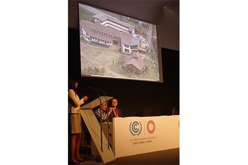 台達基金會於聯合國氣候大會周邊會議上,向國際分享那瑪夏民權國小重建案例