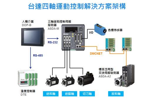 台達採用一台三軸運動控制伺服驅動器ASDA-M系列,搭配一台標準泛用型交流伺服驅動器ASDA-A2系列,實現高精、高速四軸運動控制