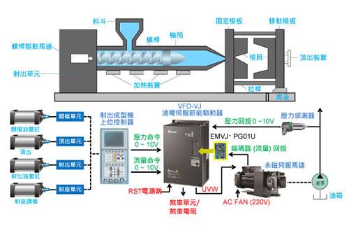 台達油電伺服節能系統HES系列於臥式注塑機系統的應用結構