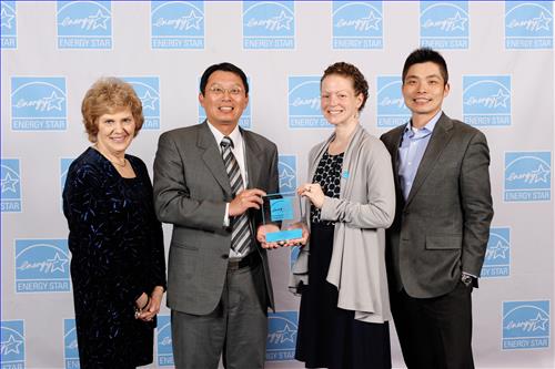 美國國家環境保護局氣候合作夥伴部總監Carolyn Snyder(右二)頒與台達能源之星年度合作夥伴–產品品牌獎,台達風扇與散熱管理事業務群美洲區資深業務總監李瑞欽 (左二) 代表受獎。