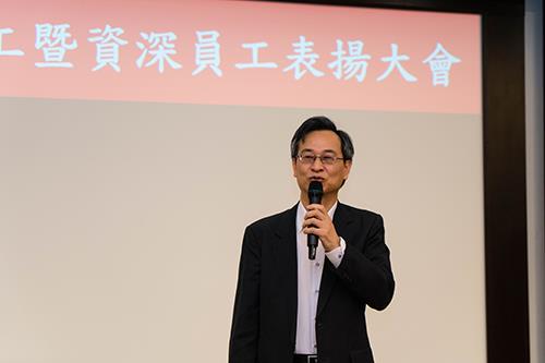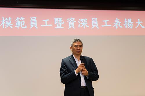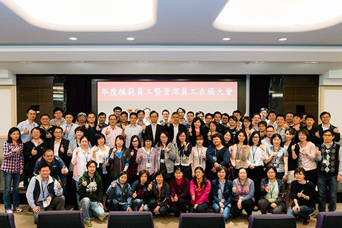 海英俊先生和張訓海先生,在五一勞動節前夕表揚2016年度資深暨模範員工