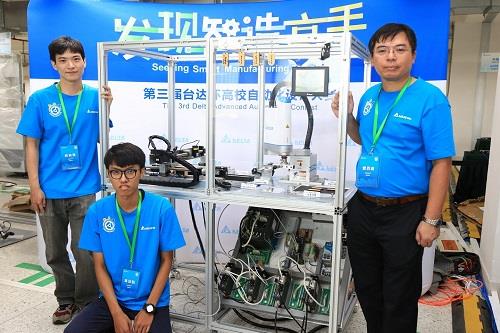 由臺北科技大學打造的特等獎獲獎作品「紀念吊牌智慧鐳射雕刻機」藉由台達自動化設備與智慧精密控制元件建構出高度智慧的彈性自動化加工設備。