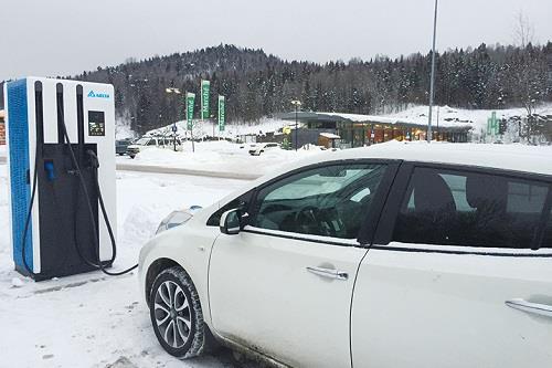 台達於挪威公路安裝之120kW直流快速充電系統,最高可提供四台電動車同時充電。