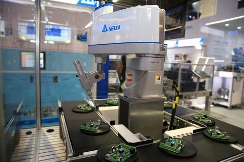台達展示了機器人工作站、智慧設備、廠務監控、能源管理、智慧工廠五大解決方案,呈現了台達在綠色智造領域的整體架構。