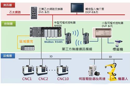 台達提供可程式控制器(PLC)、工業級乙太網路交換器及人機介面(HMI),進行產線自動化生產,有效降低人力成本達90%