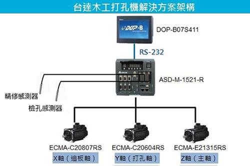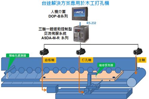 台達提供應用於木工打孔機的解決方案,提高生產效能。