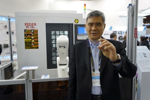 台達董事長海英俊示範以智能產線客製禮品。