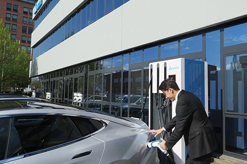 台達EMEA總部安裝的150 kW 電動車直流充電機為與會貴賓提供快速的充電服務