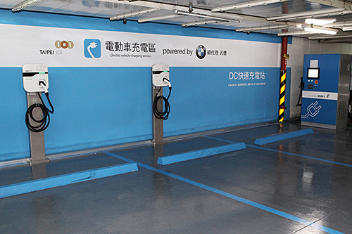 台北101大樓安裝一台台達50kW直流快速充電機與五台交流充電器