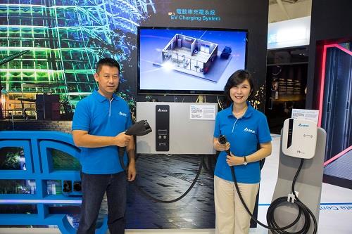 台達蟬聯2017「天下企業公民獎」首獎,持續推出節能產品與方案。圖為台達執行長鄭平(左)與台達品牌長郭珊珊。