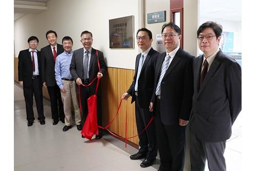 台達機電事業群劉佳容總經理(右三) 和中央大學周景揚校長(左四) 及其他代表為「機器視覺研究中心」揭幕。