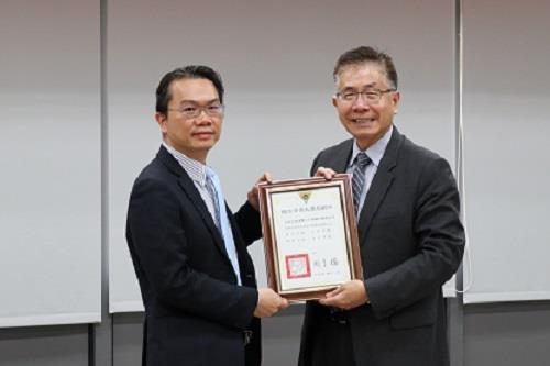 中央大學周景揚校長(右)致贈感謝狀給台達劉佳容總經理。