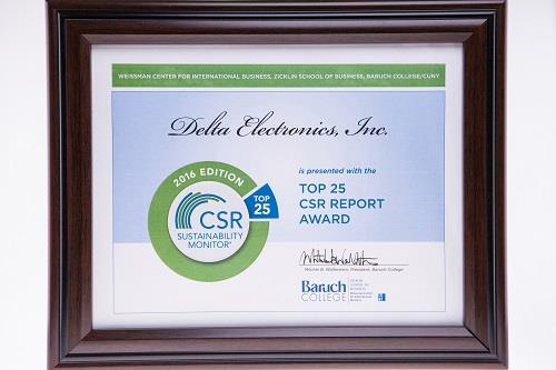 台達2016年CSR報告書獲得紐約柏魯克學院評選為全球前25。