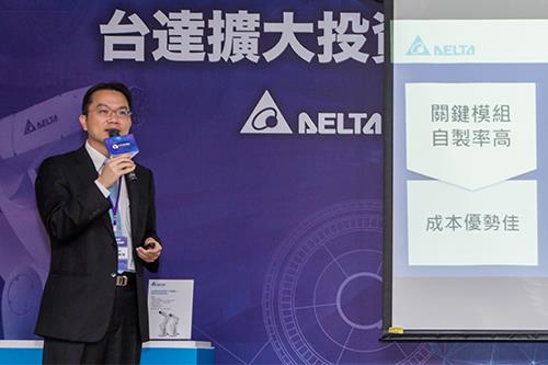 IABG劉佳容總經理在簡報中,介紹台達機器人關鍵零組件自製率高,是發展機器人的主要優勢之一。