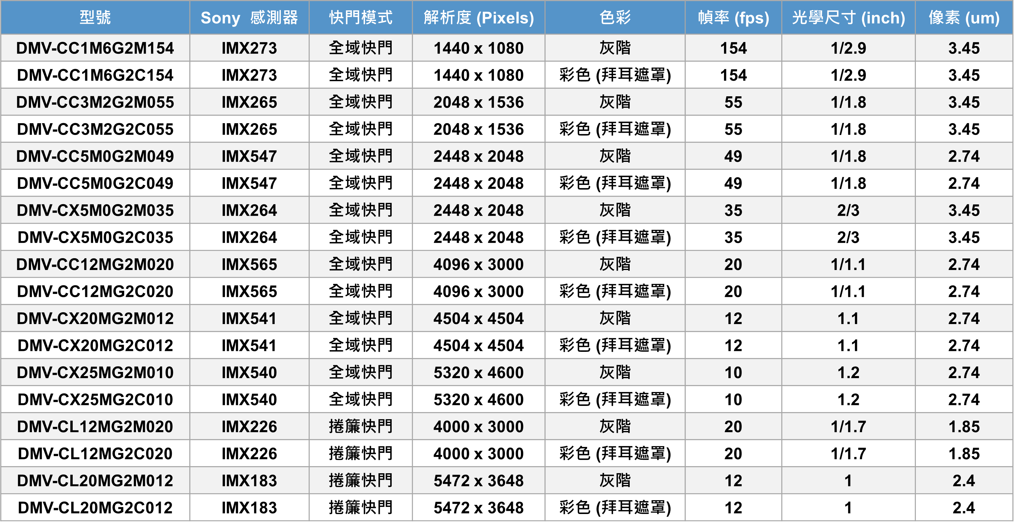 台達 2.5 GigE 工業攝影機 DMV-C 2.5GigE 系列,搭載 Sony IMX 感光元件,具備低雜訊與優異影像處理能力,支援高速、高解析及最遠 100 公尺長距離影像傳輸,有效提升設備稼動率。全域快門設計可避免動態影像失真,確保高速產線與多相機同步拍攝的穩定性。 採用乙太網路架構與標準 GigE 介面,相容既有 GigE 網路基礎設施,使用者可輕鬆升級至 2.5 GigE,並為 AI 與智慧機器人應用做好準備。