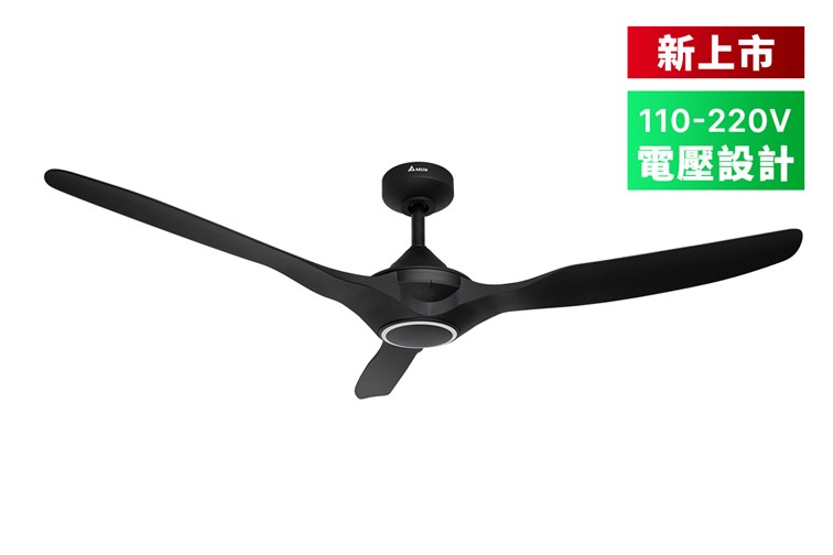 台達DC直流節能吊扇海鷗系列 - 極致節能、極靜音的吊扇,第二代機種採用110–220V 電壓設計,不需重新配置額外電源即可輕鬆對應各種場域需求;最大風量可達430 m³/min,