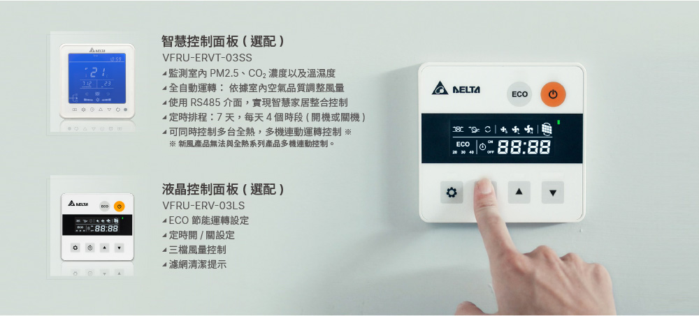 ● 智能型控制面板:VFRU-ERVT-02SS / VFRU-ERVT-03SS
