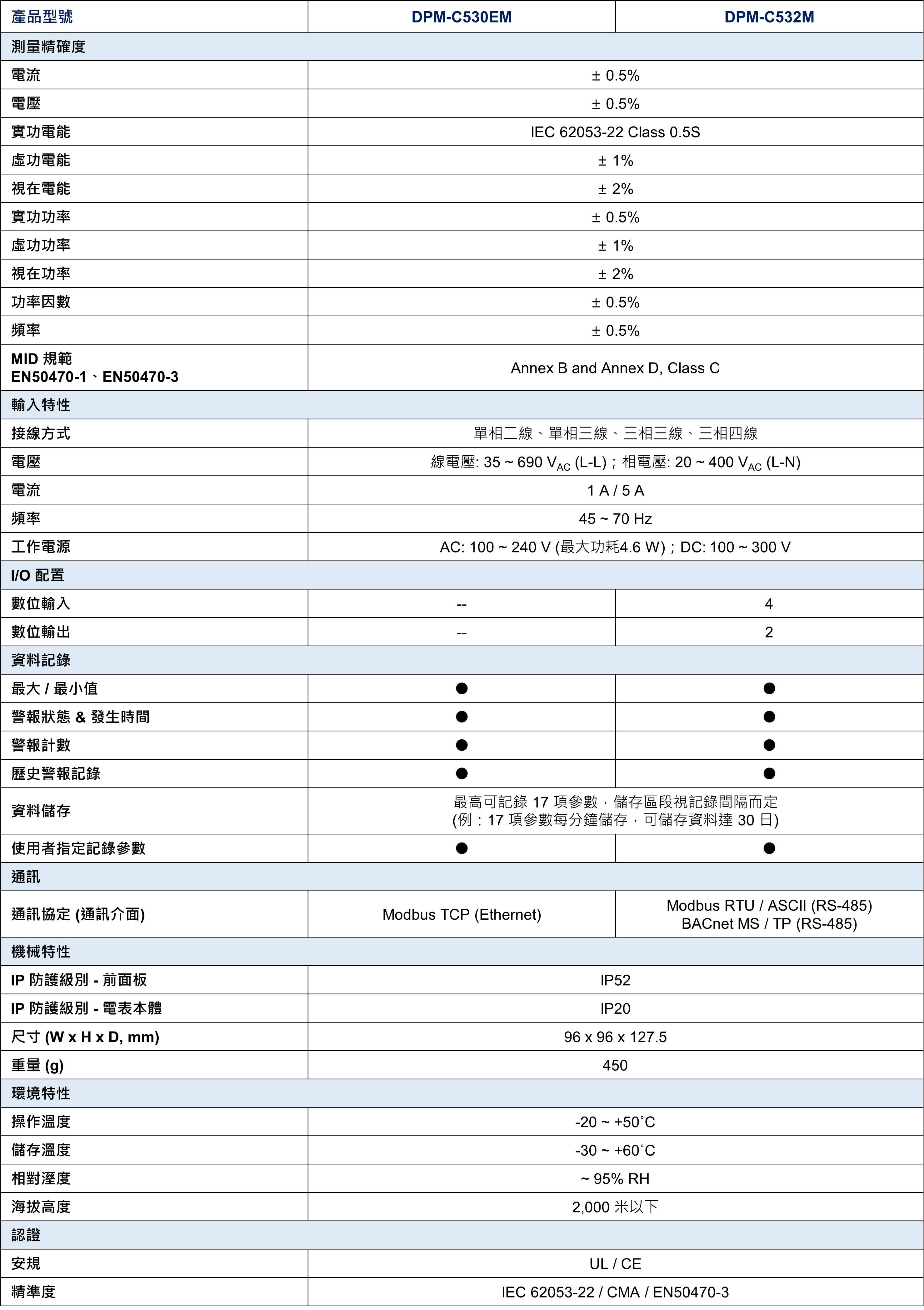 - 滿足歐洲用電計費需求:符合 MID (EN 50470-1/3, Annex B & Annex D, Class C) 規範