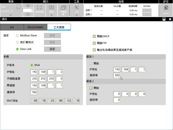 1. 進入工具>>通訊(下圖一)>> 乙太網路>> Data Link 設定