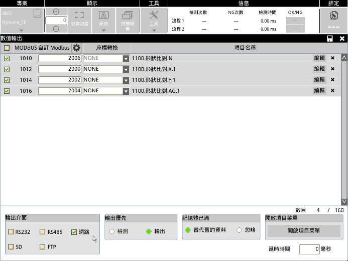 3. 選擇1099數值輸出>>勾選輸出介面「網路」>>開啟項目菜單>>新增檢測數值,如圖四