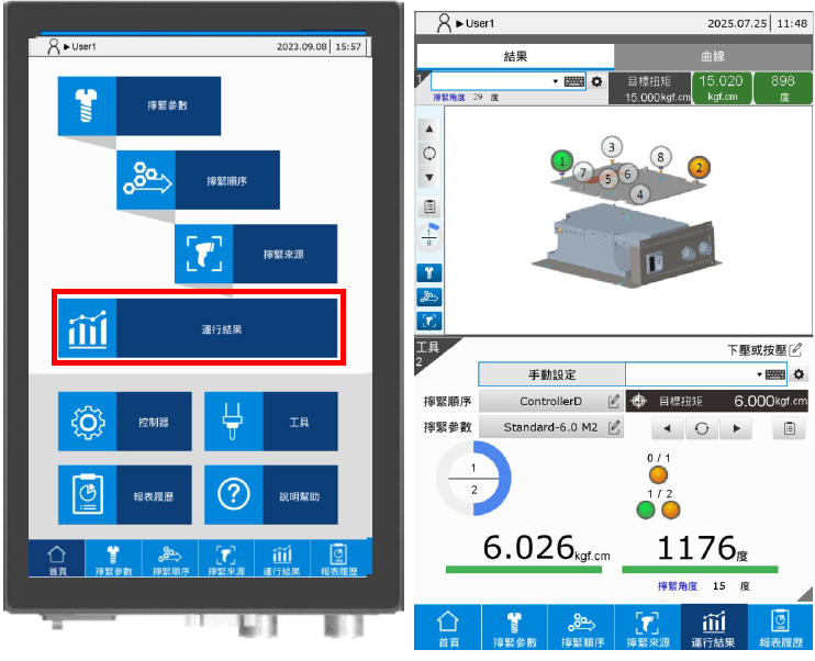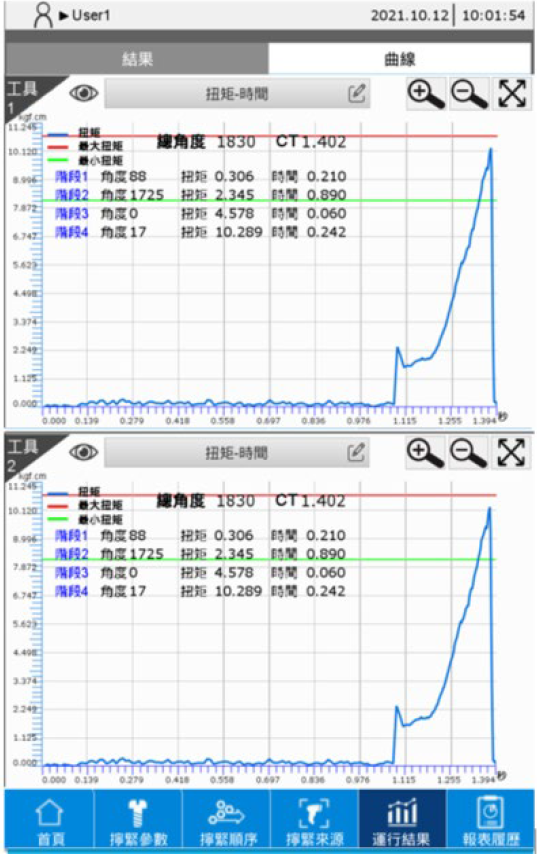此外,DCSS 亦支援乙太網路 (Ethernet) 通訊,具備完善數據串接能力,可上傳鎖附結果、條碼資訊、工單資料與歷史紀錄,並能產生完整鎖附曲線圖,相關數據可無縫對接至工廠 MES 系統,支援生產履歷管理與品質追溯。