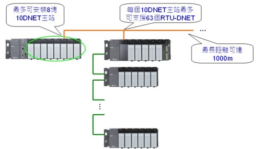 可透過本地IO擴充及遠端IO擴充兩種方式。遠端IO是透過DeviceNet方式來擴充。 本地IO