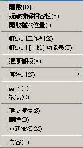 Step 1 在需要執行檔上按"滑鼠右鍵"點選"內容" 。