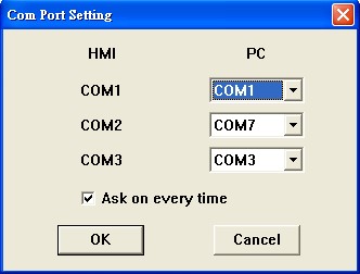畫面便會出現COM PORT選擇的訊息,並可選擇是否要勾選每次開啟前詢問的選項